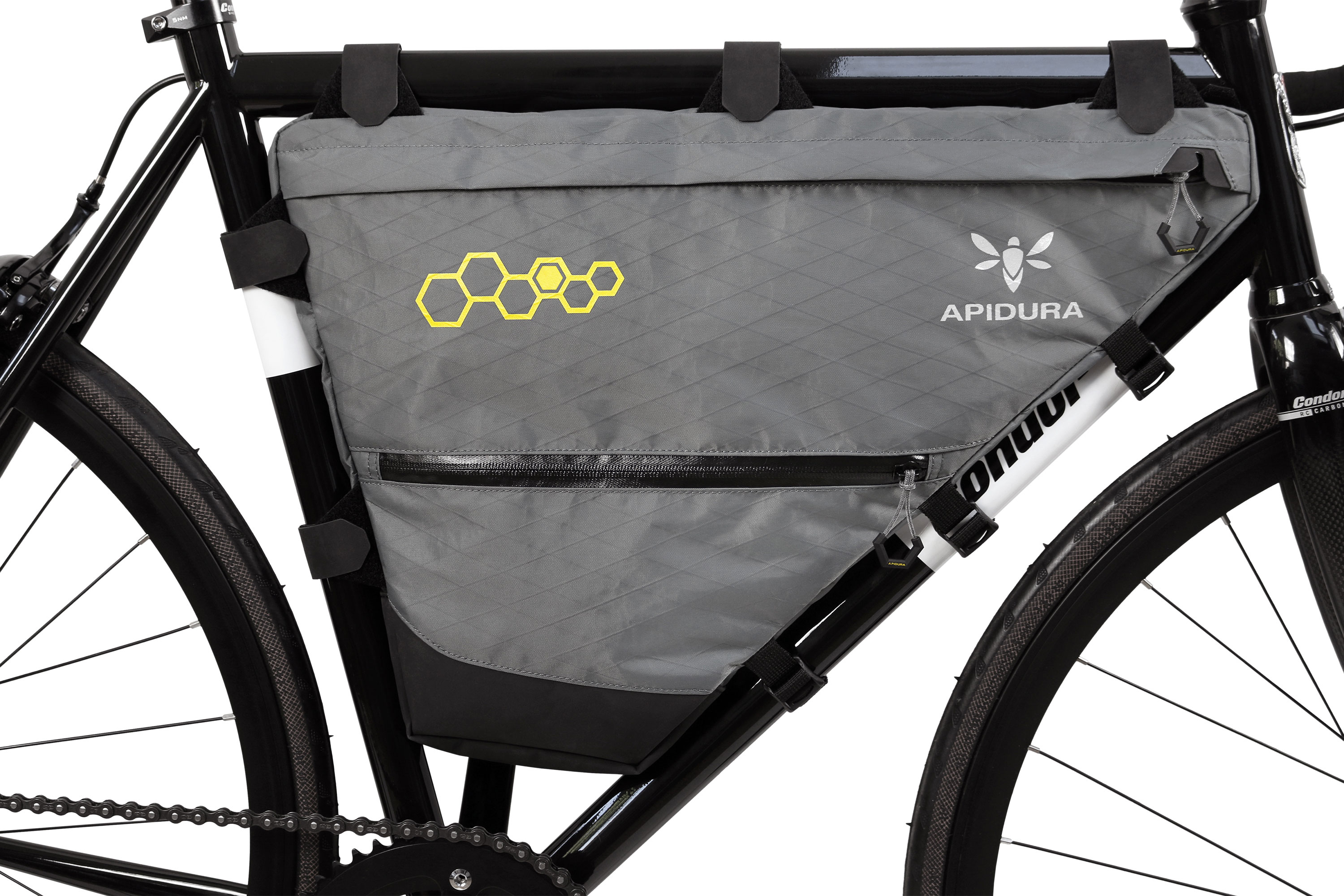 The Pack is designed for compact frame geometries and constructed from a lightweight, all-weather laminate that’s tough enough to avoid the tears and scuffs of off-road riding. It’s also suited for storing heavier items, lowering the bike’s centre of gravity and allowing for more natural handling.