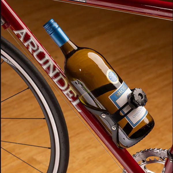아룬델의 루니 빈(Looney Bin)은 와인병, 커피 보온병, 1리터 날진(Nalgene) 물통 등 비표준 용기를 고정할 수 있도록 설계된 다용도 조절식 물통 거치대입니다.