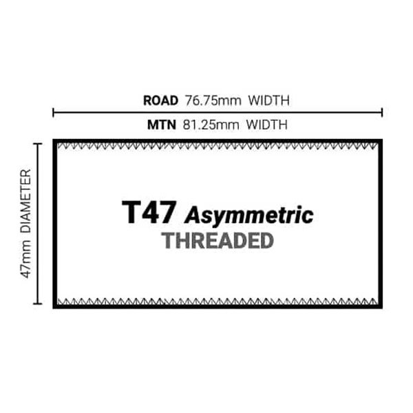산악자전거용 81.25mm 폭과 로드 자전거용 76.75mm 폭의 나사산 프레임을 선택할 수 있습니다.